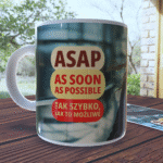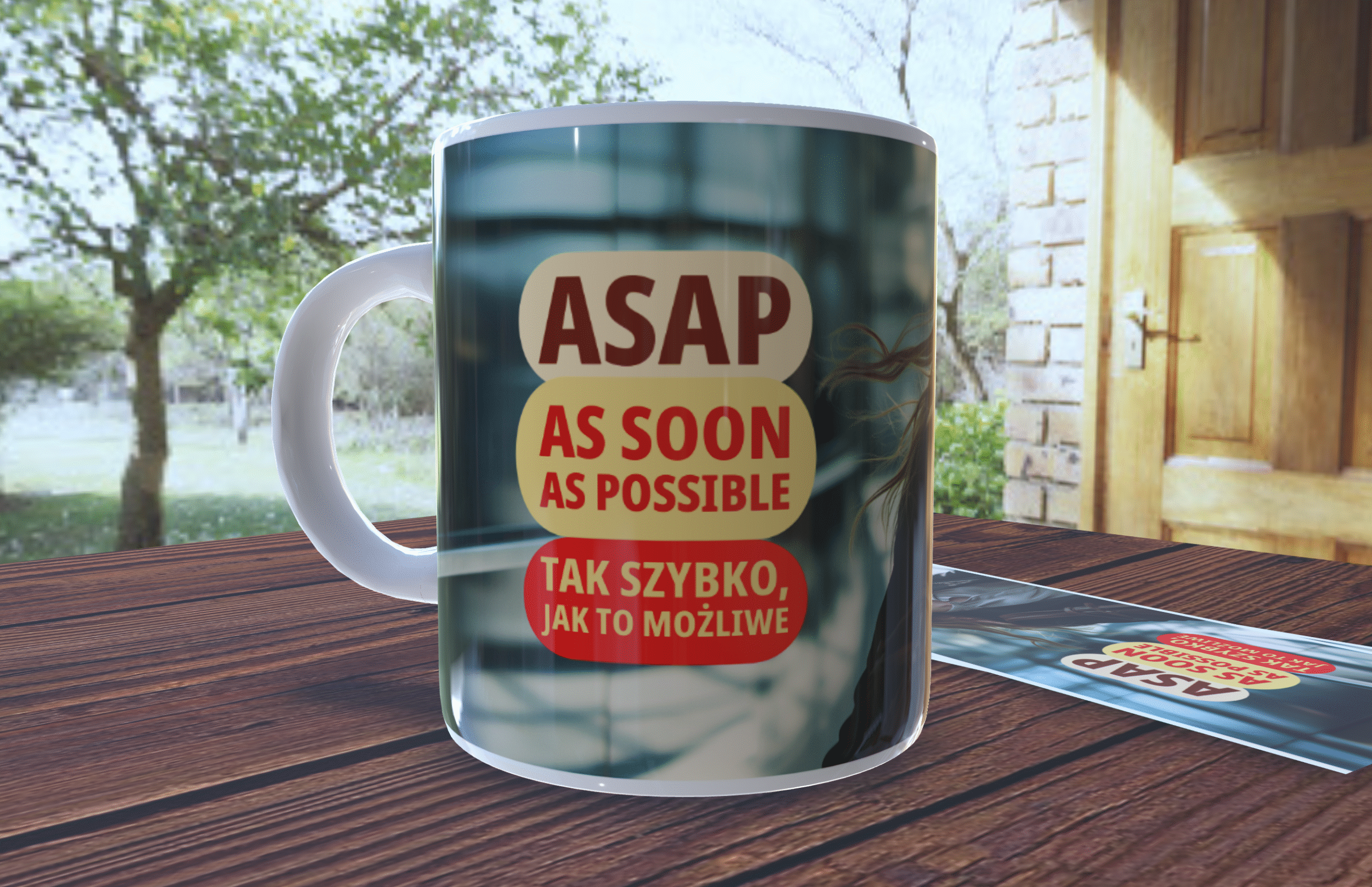 Ten kubek to nie tylko naczynie do picia, ale także mini-lekcja korpomowy. Zestawienie angielskiego skrótu „ASAP” z jego polskim tłumaczeniem stanowi doskonałą pomoc w przyswajaniu korporacyjnego żargonu. To idealny wybór dla nowicjuszy w świecie biznesu, jak i dla weteranów korporacyjnych batalii, którzy z przymrużeniem oka podchodzą do biurowej rzeczywistości.