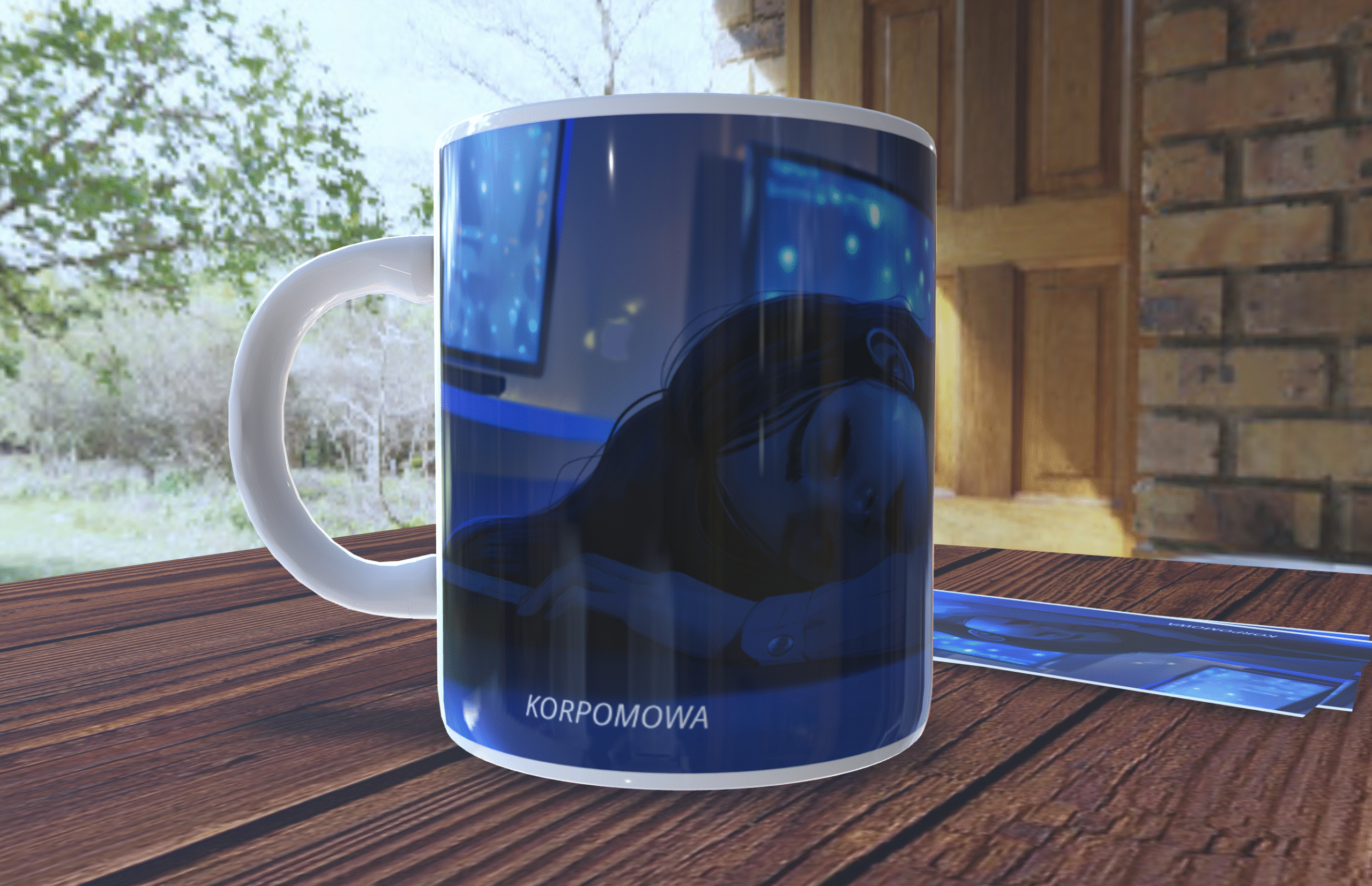 Na powierzchni kubka znajduje się intrygująca grafika przedstawiająca kobietę śpiącą na biurku. Scena rozgrywa się wieczorem, a jedynym źródłem światła są monitory komputerów, co doskonale oddaje atmosferę długich godzin spędzonych w biurze. Ta realistyczna ilustracja z pewnością przyciągnie uwagę i wywoła uśmiech zrozumienia u każdego, kto kiedykolwiek doświadczył intensywnego okresu pracy nad projektem.
