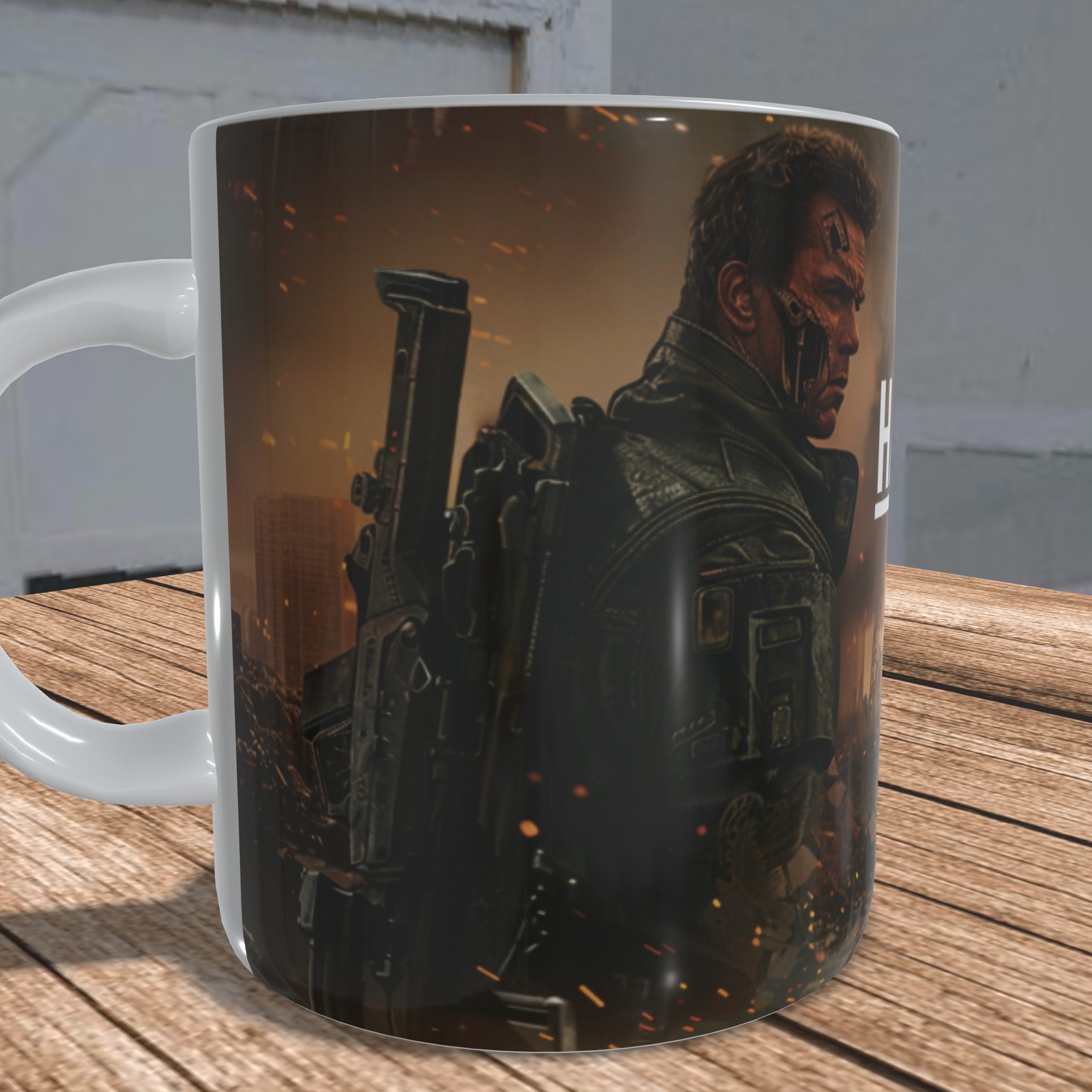 Przedstawiamy wyjątkowy kubek z napisem „Hasta la vista, baby”, który łączy w sobie siłę, styl i odrobinę humoru. Ten kubek, inspirowany kultową frazą z filmu, jest idealnym wyborem dla fanów akcji i miłośników apokaliptycznych klimatów. Głównym motywem kubka jest uzbrojony żołnierz oraz płonące miasto w tle, co nadaje mu niepowtarzalnego charakteru i dynamiki. To doskonały sposób na rozpoczęcie dnia z dawką energii i determinacji.