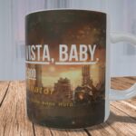 Kubek „Hasta la vista, baby” wyróżnia się swoim wyrazistym designem i silnym przesłaniem. Uzbrojony żołnierz symbolizuje siłę, odwagę i gotowość do walki, natomiast apokaliptyczne płonące miasto w tle dodaje dramatyzmu i głębi. Taki design nie tylko przyciąga wzrok, ale również inspiruje do pokonywania codziennych wyzwań z pewnością siebie i determinacją. Napis „Hasta la vista, baby” dodaje całości humorystycznego akcentu, przypominając o ikonicznych momentach z popkultury.