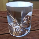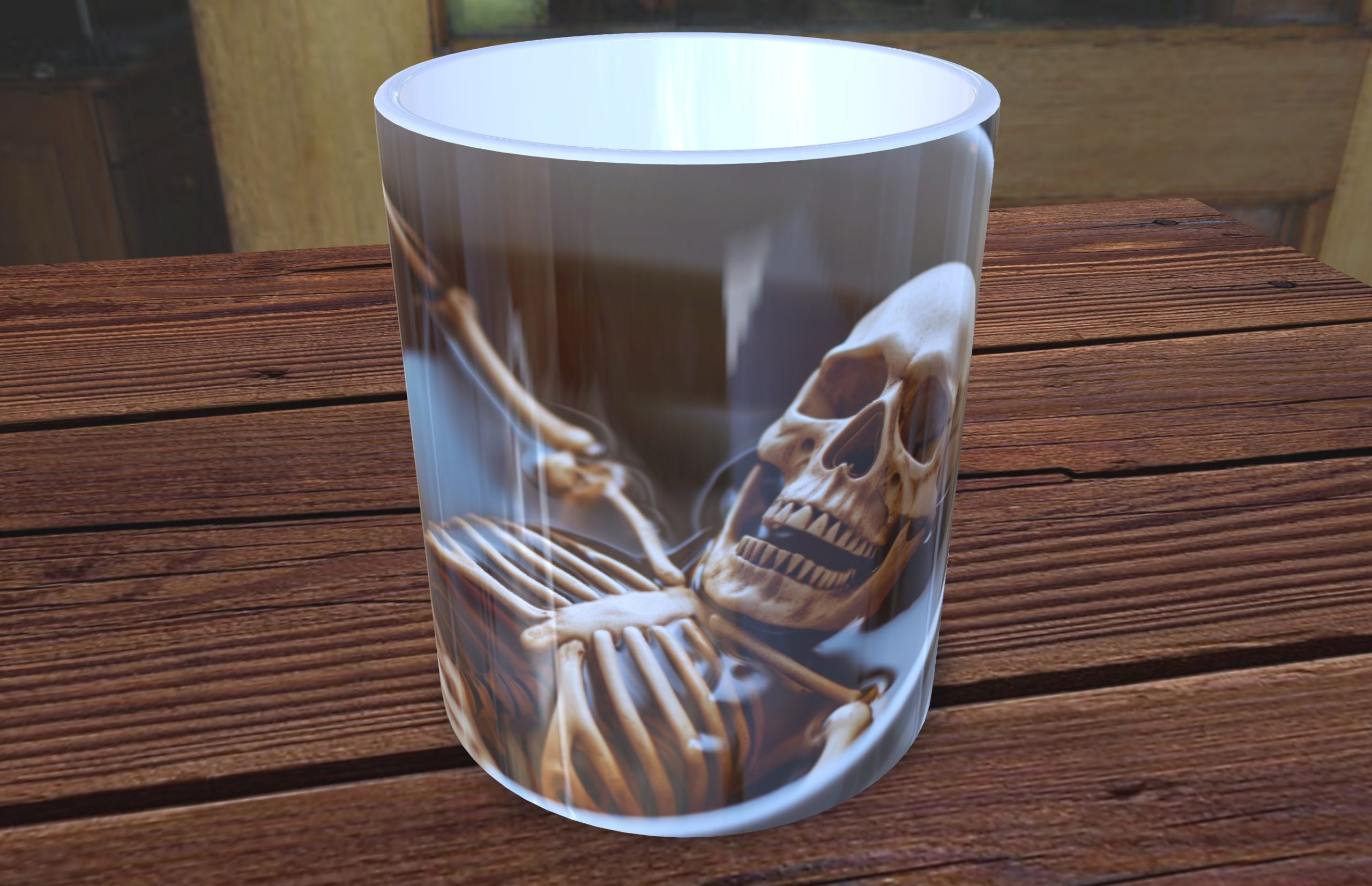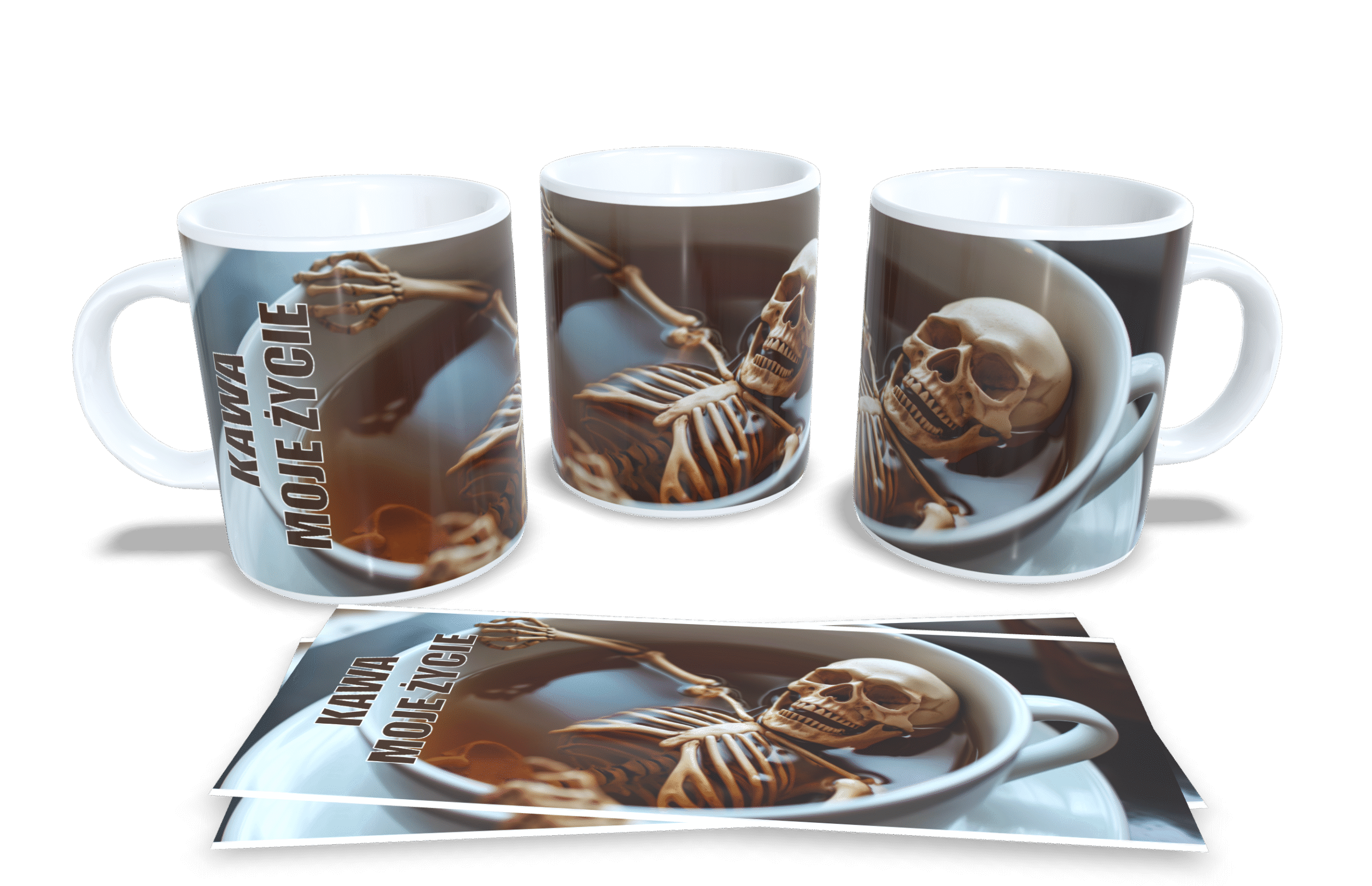 Kubek „Kawa Moje Życie” to niepowtarzalny produkt, który łączy w sobie oryginalny design i dużą dawkę humoru. Na kubku znajduje się ilustracja szkieletu leżącego w filiżance kawy, co na pierwszy rzut oka może wydawać się zaskakujące, ale w rzeczywistości jest to zabawne nawiązanie do miłości wielu z nas do kawy. Grafika jest bardzo szczegółowa, co dodaje jej realizmu i sprawia, że jest jeszcze bardziej atrakcyjna wizualnie.