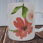 Kubek zdobią delikatne, różowe kwiaty, które dodają mu uroku i subtelności. Te kwiatowe wzory są nie tylko estetyczne, ale również wprowadzają atmosferę spokoju i romantyzmu. Różowe i zielone detale doskonale komponują się z białym tłem kubka, tworząc harmonijną i przyciągającą wzrok całość.