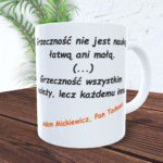 Kubek z cytatem: Grzeczność nie jest nauką łatwą ani małą