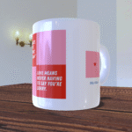 Kubek zdobią dwa napisy: „Miłość znaczy, że nigdy nie musisz mówić 'przepraszam’” oraz jego angielski odpowiednik „Love means never having to say you’re sorry”. To piękne, uniwersalne przesłanie, które przypomina o wartości miłości w naszym życiu. Cytat ten jest doskonale wyeksponowany na tle delikatnych, pastelowych kolorów, co nadaje kubkowi eleganckiego i nowoczesnego wyglądu.