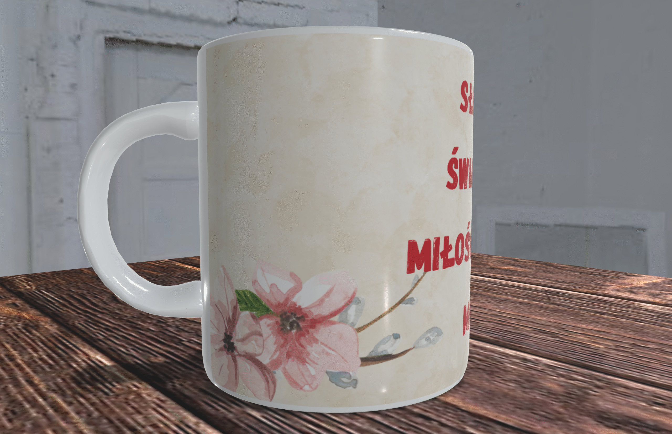 Kubek charakteryzuje się eleganckim designem, który z pewnością przypadnie do gustu osobom ceniącym subtelność i klasykę. Jasne tło kubka jest delikatnie ozdobione kwiatowym wzorem, który dodaje mu uroku i sprawia, że staje się on wyjątkowym elementem każdego wnętrza. Stylowe kwiaty w pastelowych kolorach idealnie komponują się z całością, tworząc harmonijny i estetyczny wygląd.