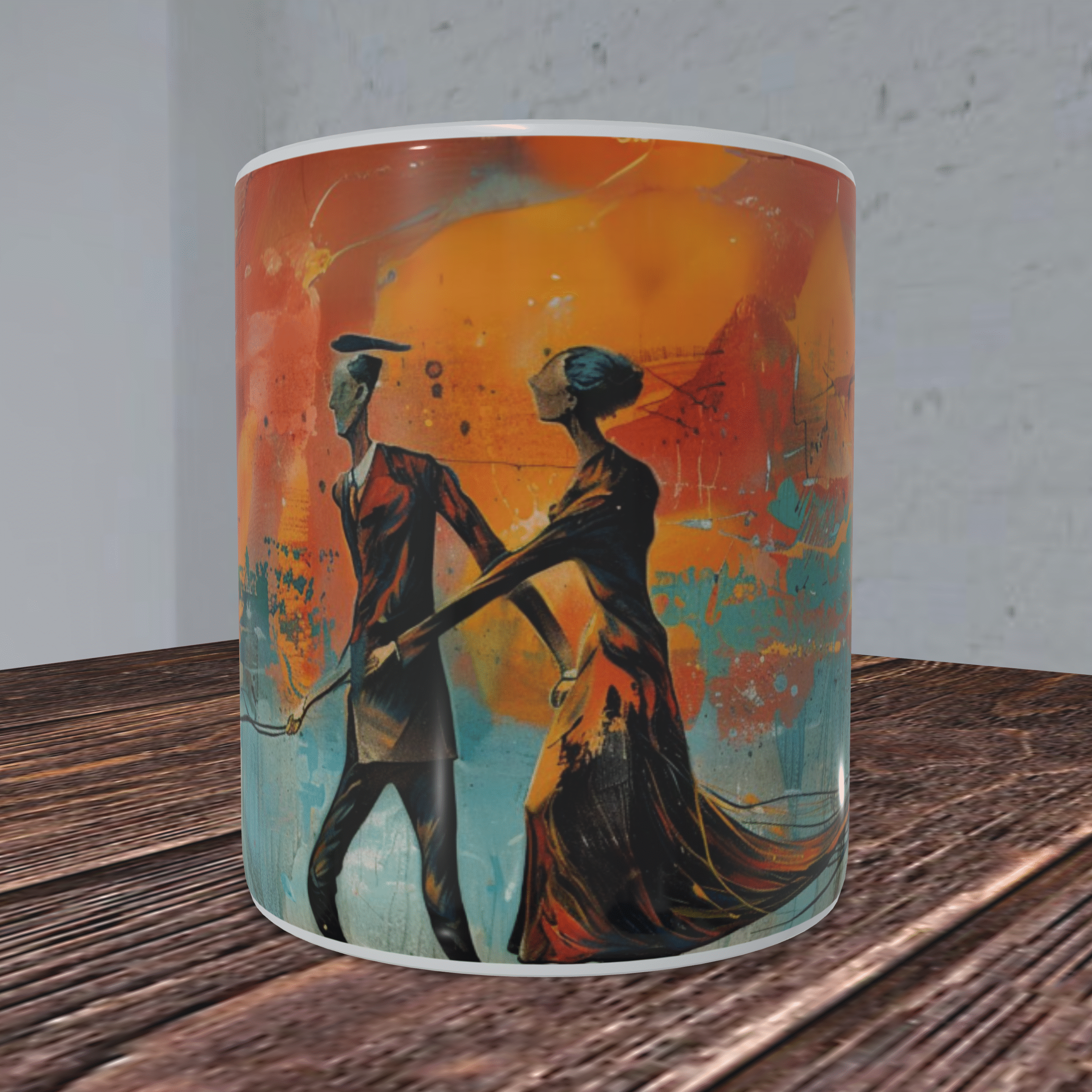 Kubek z Motywem Pary Idącej Przez Świat – W Stylu Salvadora Dali