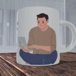 Towarzyszą mu dwa sympatyczne rysunki – z jednej strony kobieta z laptopem, z drugiej strony mężczyzna z tabletem. Ilustracje te dodają humorystycznego akcentu i sprawiają, że kubek staje się jeszcze bardziej wyjątkowy.